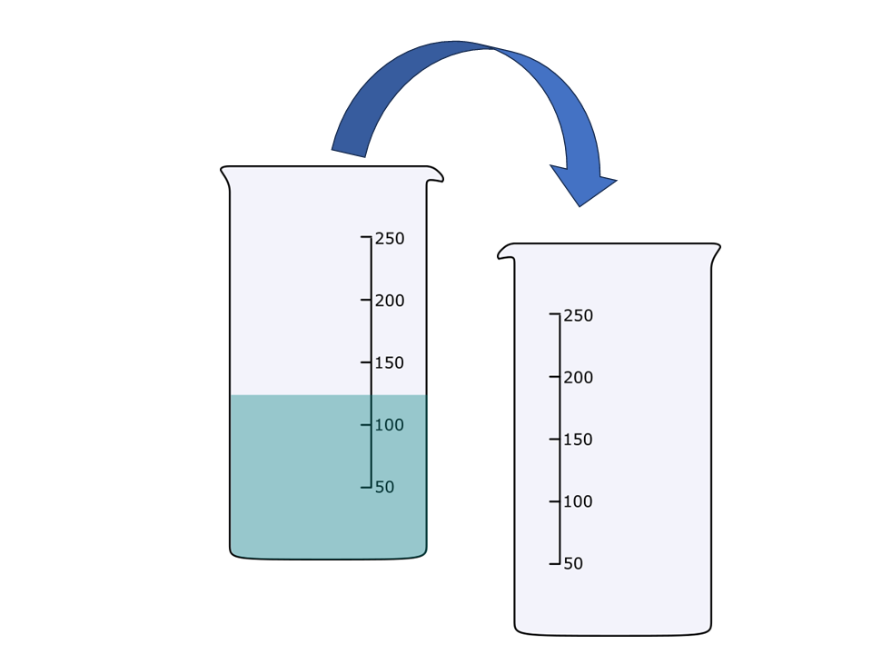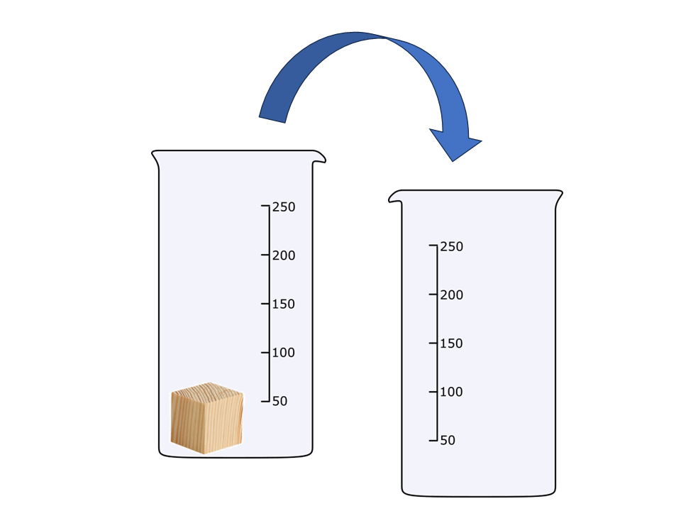 Gib (kippe, schütte) den Würfel vorsichtig von einem in das andere Glas. Verändert er seine Form?