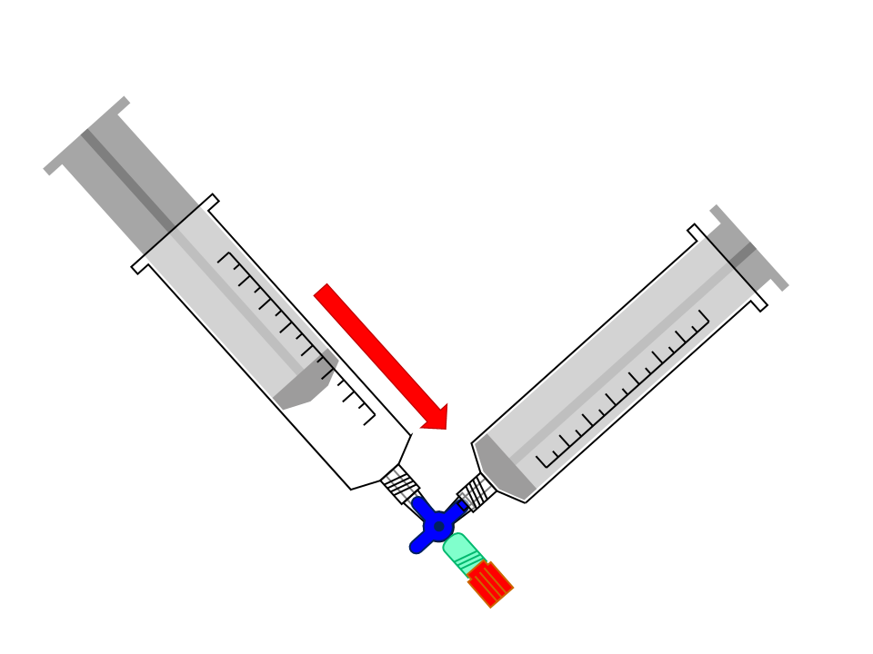 - Verbinde die Spritze voll Luft mit einer leeren Spritze.