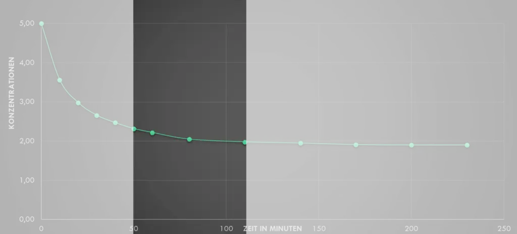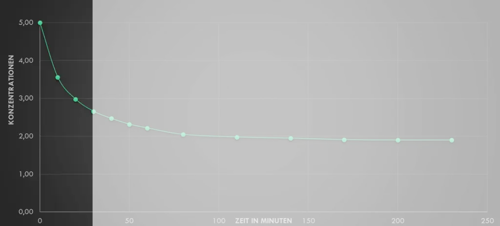 Alle 10 Minuten stechen wir mit einer Kanüle durch den Stopfen, entnehmen eine winzige Probe und bestimmen die noch vorhandene Konzentration der Ethansäure.4.