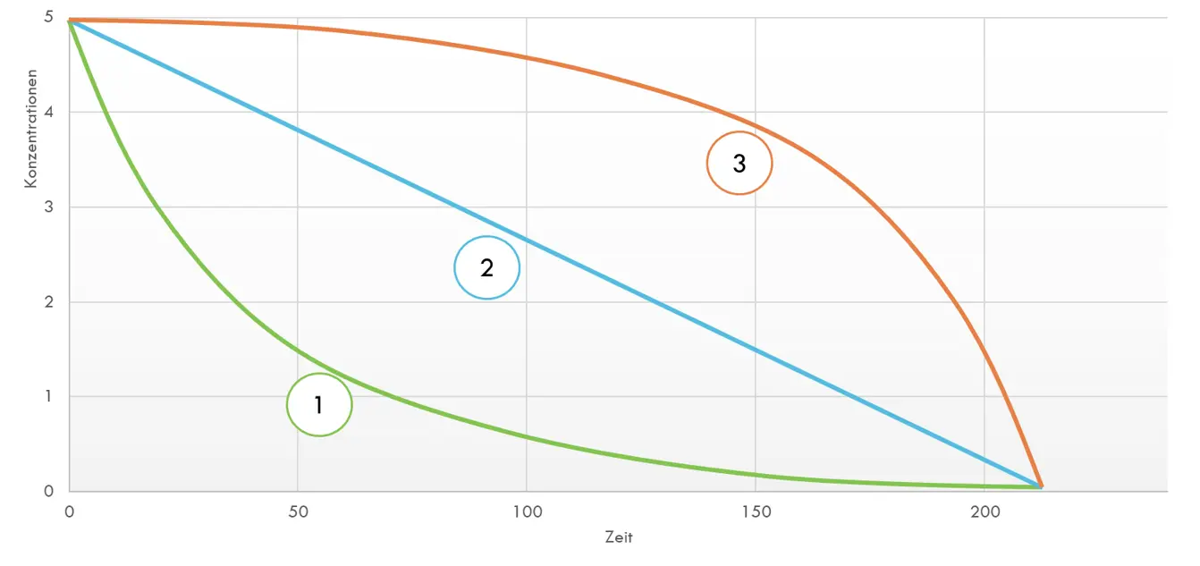 Denkbare Kurvenverläufe für die gemessene aktuelle Konzentration der Essigsäure.5