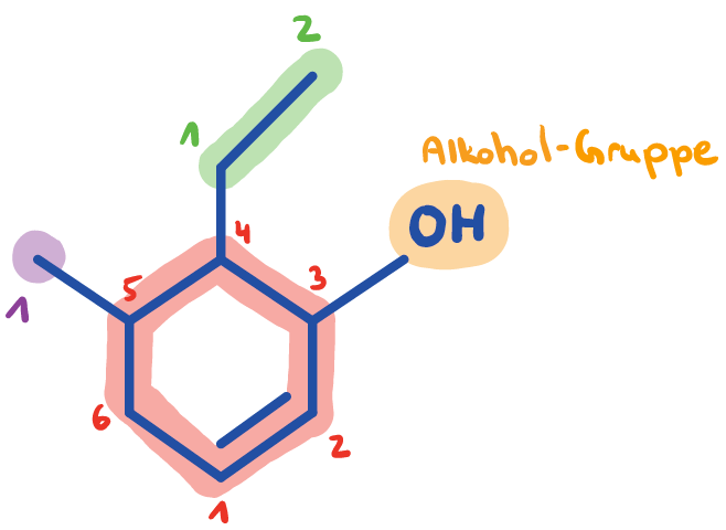 - Der in Klammern gesetzte Name der verzweigten Seitenkette erhält zuletzt noch die Positionsziffer an der Hauptkette.