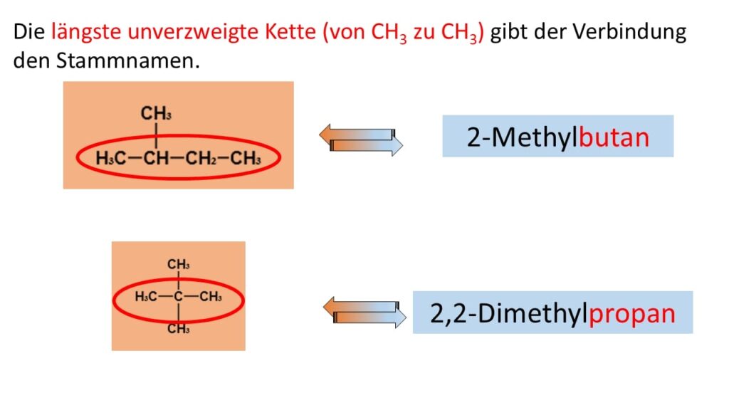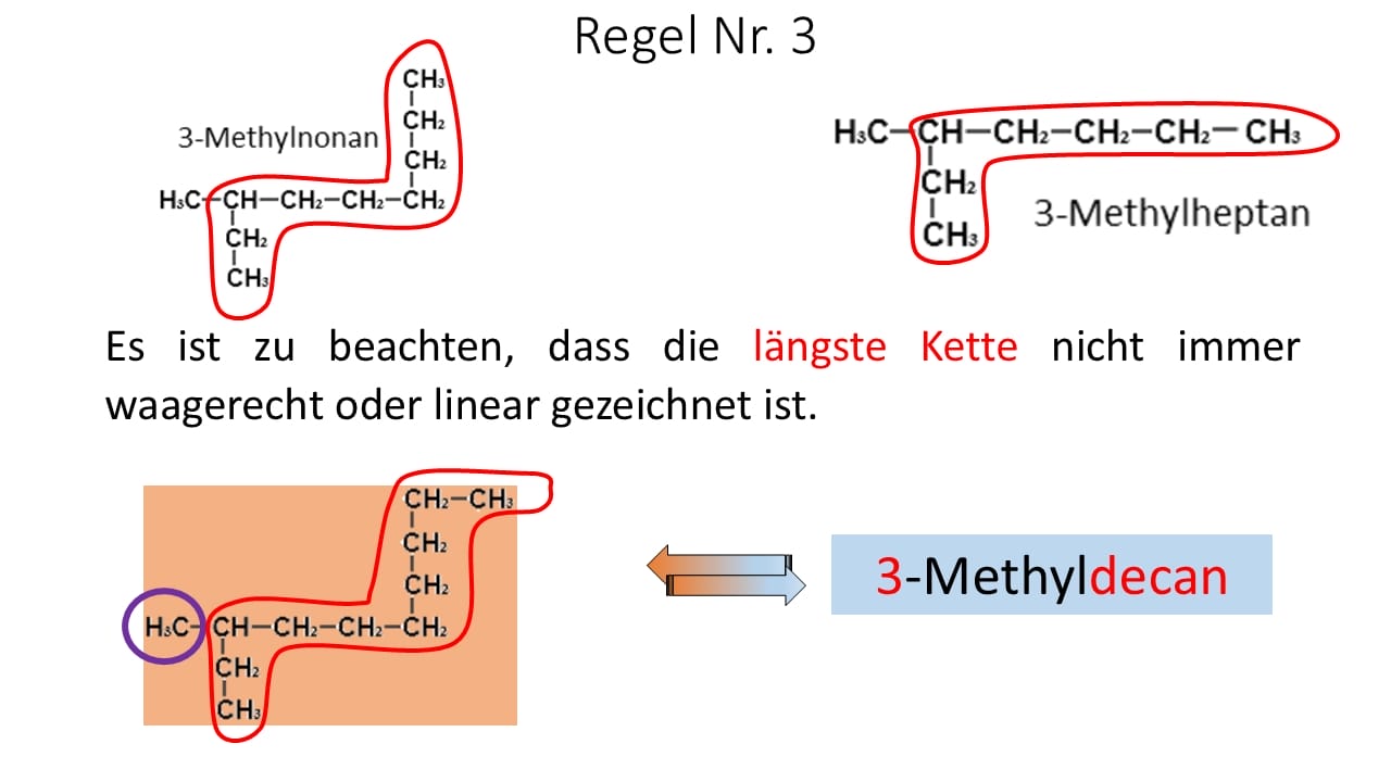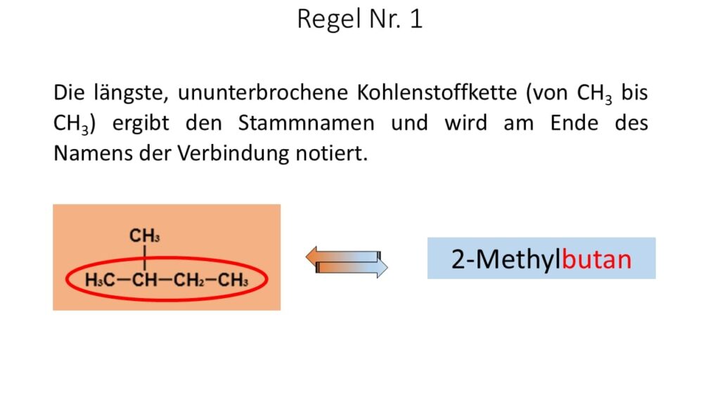 Die eindeutige und systematische Benennung von Verbindungen wird als Nomenklatur bezeichnet. Sie gilt nicht nur für die Alkane, sondern für alle „organischen“ Stoffklassen. Daher ist es wichtig, sich mit den Regeln der Nomenklatur auseinanderzusetzen.