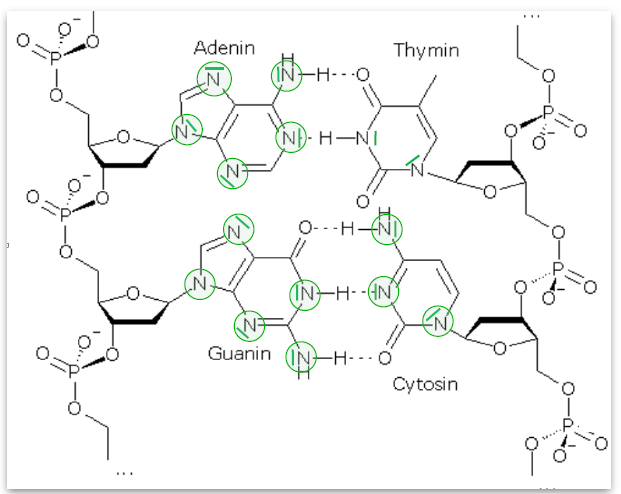 Durch eine Veränderung der DNA-Basen funktioniert die Paarung der gegenüberliegenden Basen über H-Brücken (Adenin-Thymin bzw. Guanin-Cytosin) nicht mehr. Bei der Verdopplung der DNA können dann Mutationen entstehen, was zu Krebs führen kann.