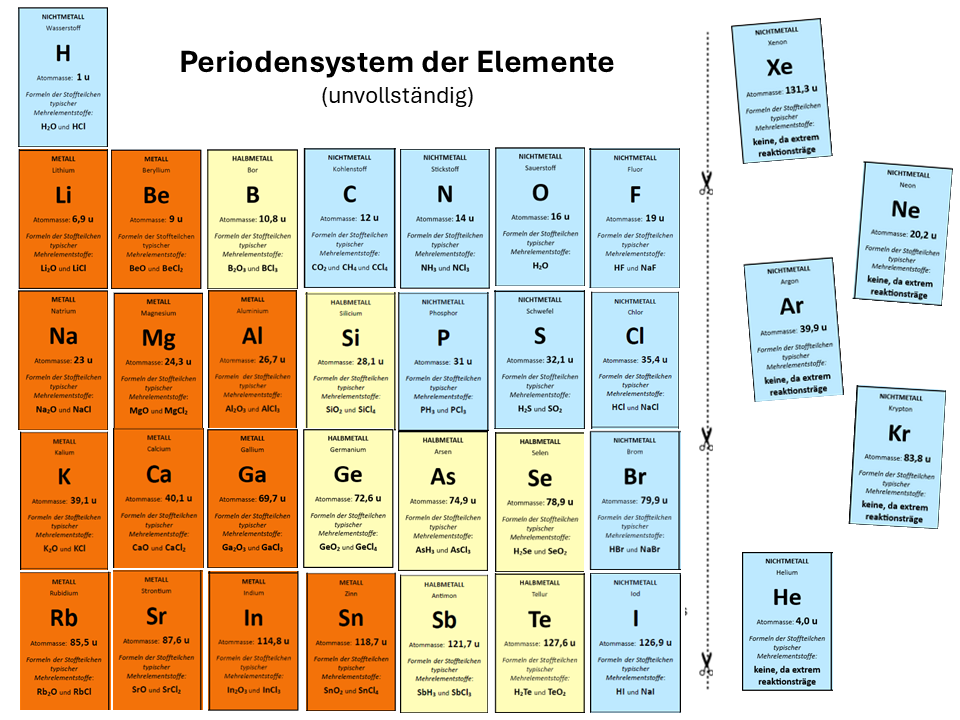 - Suche eine triftigen Begründung dafür, dass man die sogenannten Edelgase historisch erst spät entdeckte. Ordne die zusätzlichen „Elementkärtchen der Edelgase“ aus M2, Edelgase fügen sich ein sinnvoll in das unvollständige Periodensystem ein.