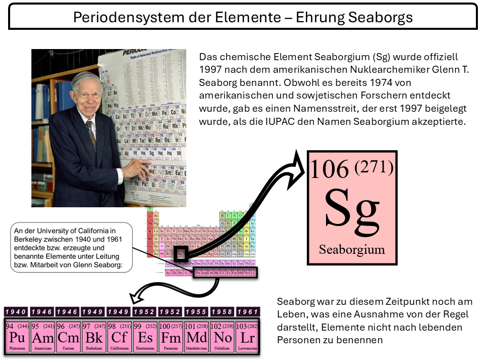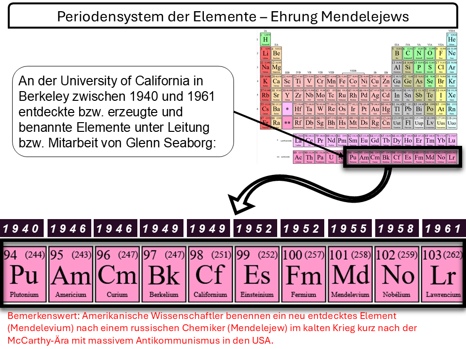 Hier eine zunehmend vollständigere Darstellung des Periodensystems der Elemente. Sie beinhaltet auch zwei nicht selbstverständliche Ehrungen.