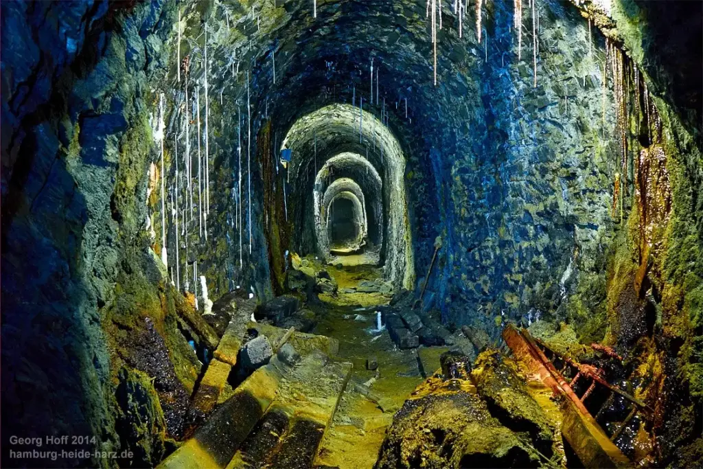 Im Röderstollen – heute UN Weltkulturerbe – in der Nähe von Goslar wurden vor über 200 Jahren Kupfersalze unter Tage abgebaut, aus denen man dann reines Kupfer herstellte.