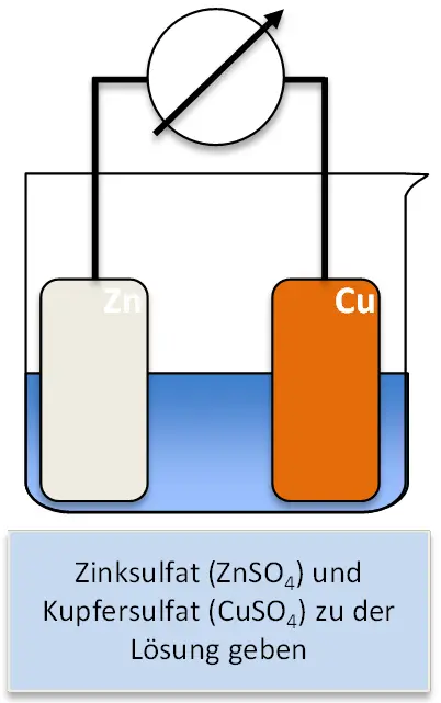 - In die Zinksulfat-Lösung ein abgeschmirgeltes Zink-Blech stellen.