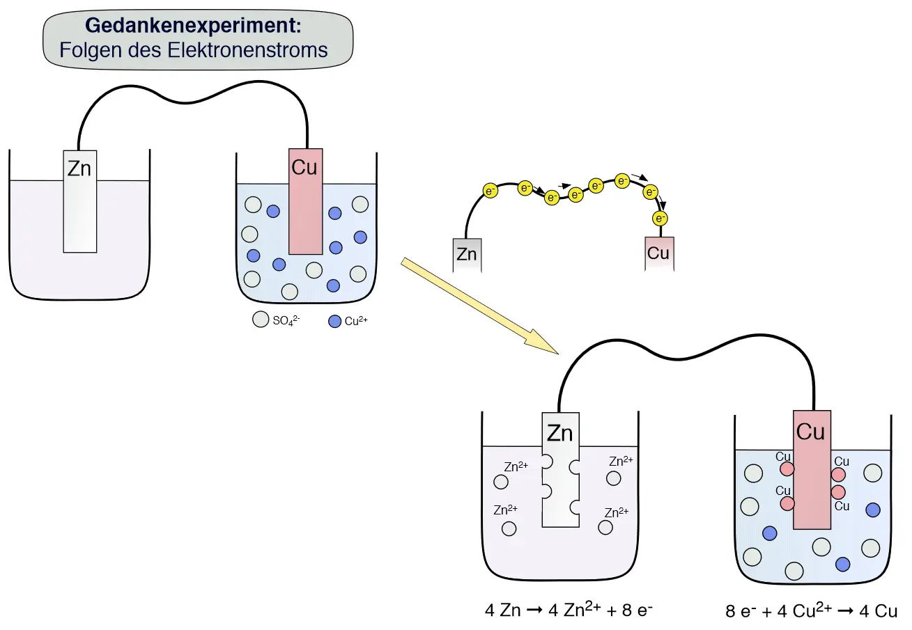 Was würde passieren, wenn man beide Metallsalz-Lösungen einfach in ein Becherglas geben würde?