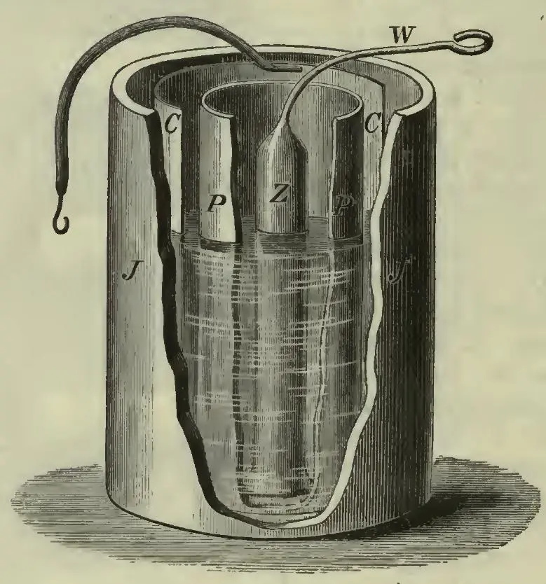 Schnittdarstellung eines Daniell-Elements von William Edward Ayrton (gemeinfrei)