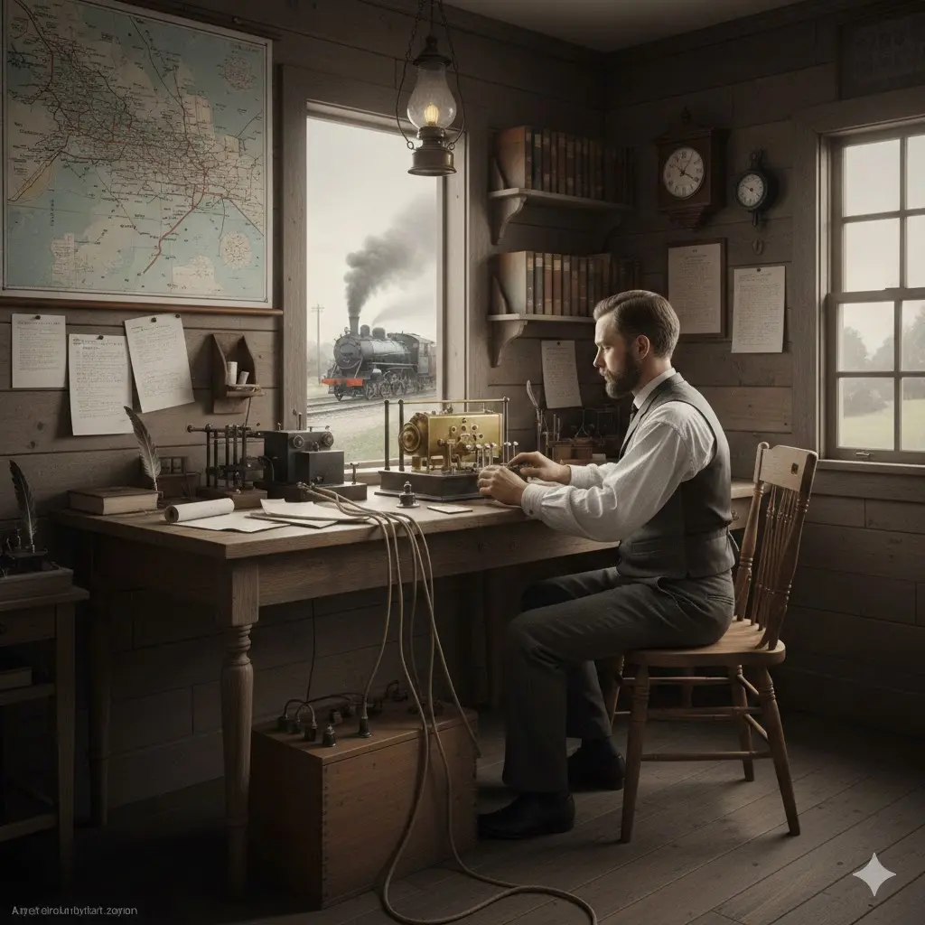 Künstlerische Darstellung eines Telegrafen (KI generiert)
