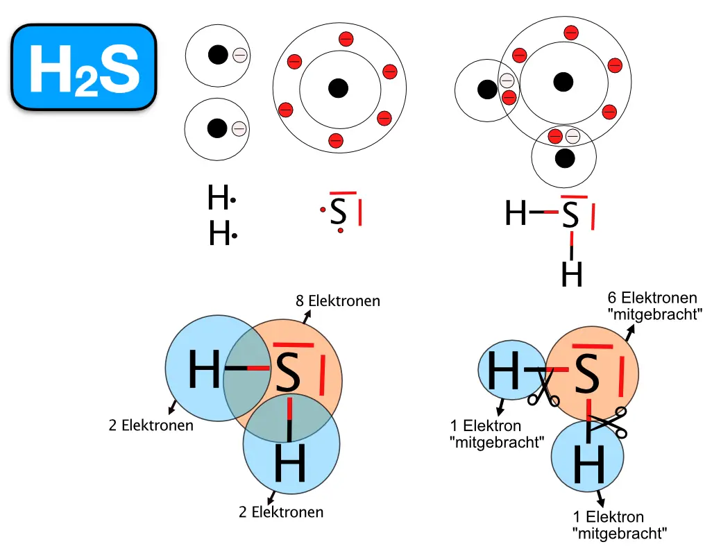 Das Schwefelwasserstoffmolekül ist für den Geruch nach faulen Eiern verantwortlich. H2S ist sehr giftig, unsere Nase aber auch sehr empfindlich für H2S. Schon kleinste, noch ungefährliche Konzentrationen riechen wir. Sehr, sehr kleine Konzentrationen riechen übrigens nach frisch gekochten Eiern. Erst etwas größere Konzentrationen riechen nach faulen Eiern. 2