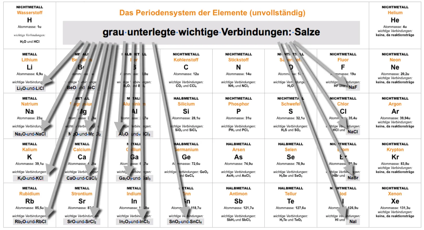 Manche Elemente bilden bei der Reaktion miteinander Salze….andere Molekülverbindungen PSE.1