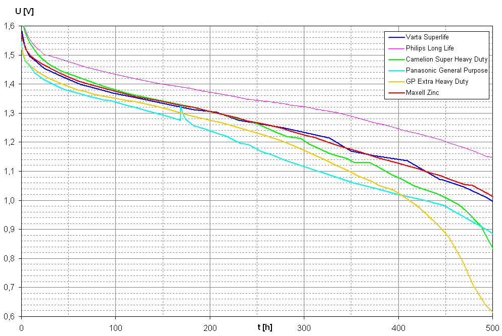 Aus unserer alltäglichen Beobachtung folgt, dass alle Batterien im Gebrauch sukzessive an Spannung verlieren.