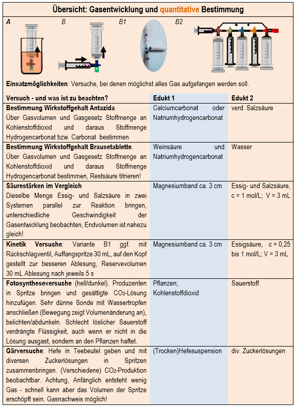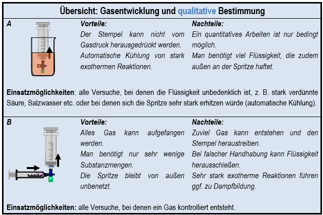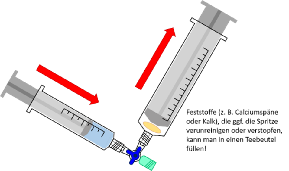 Stellt man ein Gas in einer Spritze her, so hat dies den Vorteil, dass man direkt das entstehende Volumen messen oder es im Anschluss direkt untersuchen kann.