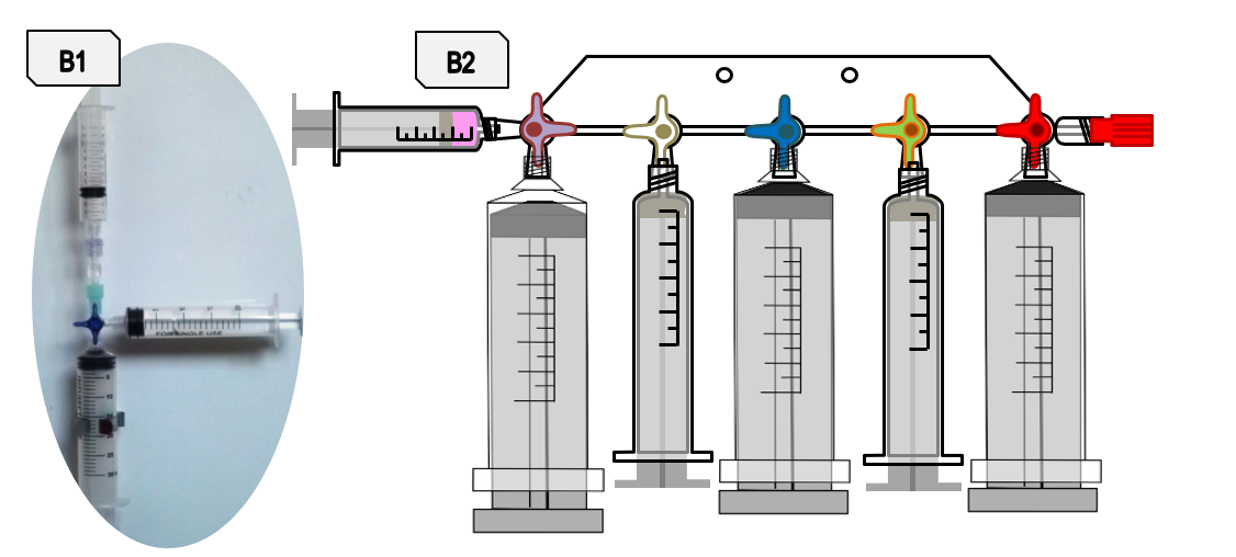 Die Gasentwicklung kann direkt in der Spritze erfolgen. Hier ein Beispiel: