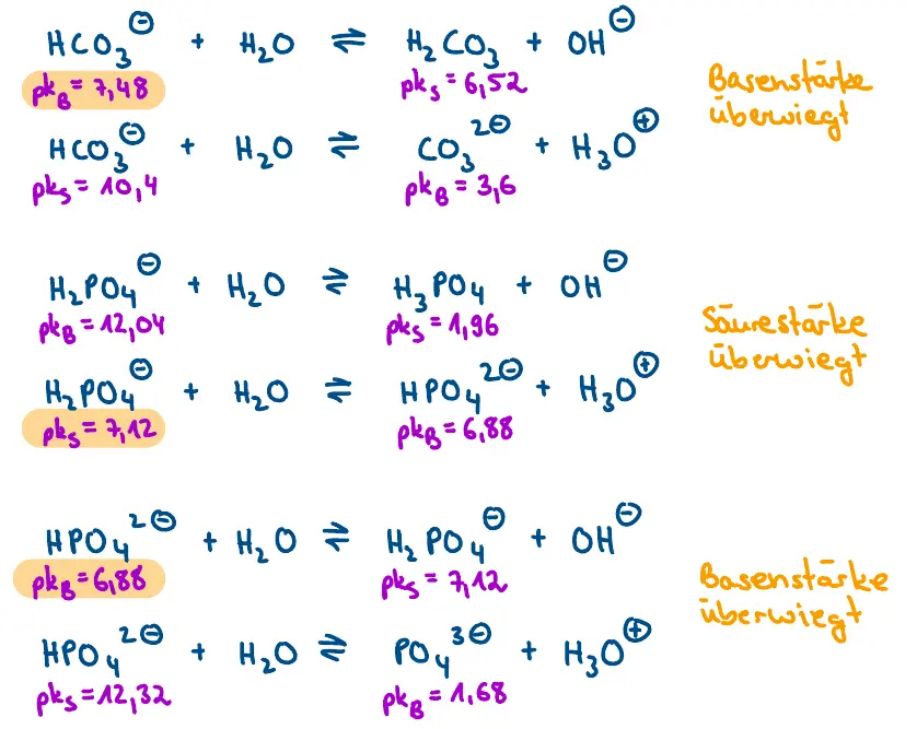 - HCO3– (pKS = 10,4 / pKB = 7,48)
