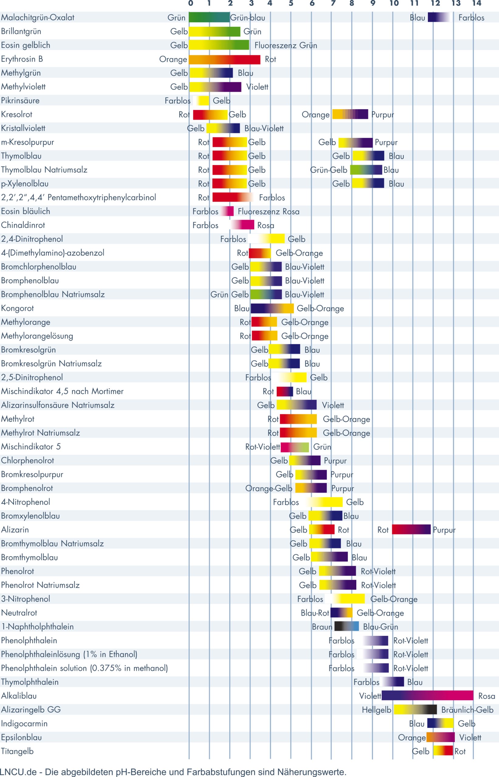 - Für eine Titration von Essigsäure mit Natronlauge empfiehlt sich ein pH-Indikator, dessen Umschlagsbereich am pH-Wert des Äquivalenzpunktes liegt, also bei pH = 9,24, zum Beispiel Thymolblau.