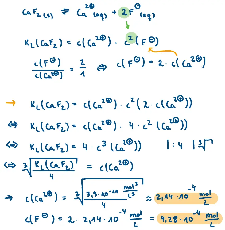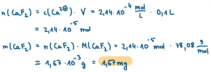 - Wie groß ist die Konzentration der Calcium- und Fluorid-Ionen in der gesättigten Lösung?