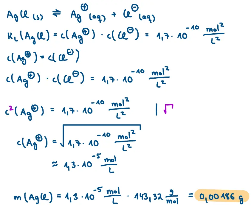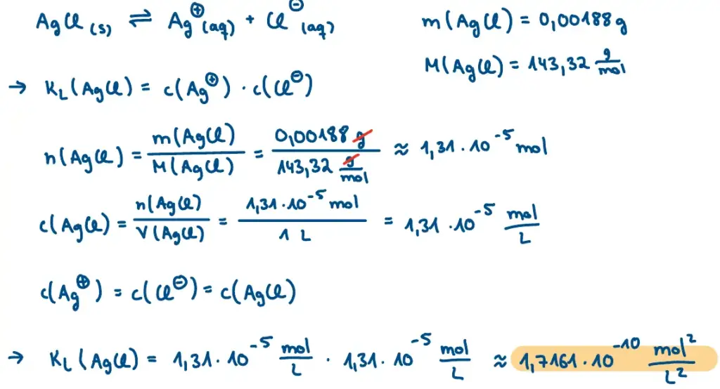 - In einem Liter destilliertes Wasser lösen sich bei 25 °C 0,0018 g Silberchlorid. Wie groß ist das Löslichkeitsprodukt?