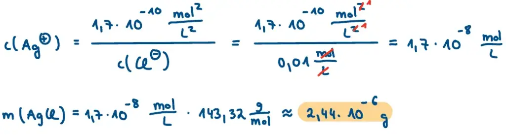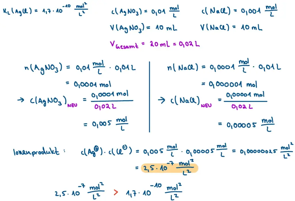 - Tritt eine Fällung ein, wenn man 10 mL einer Lösung von Silbernitrat der Konzentration 0,1 mol/L mit 10 mL einer Kochsalzlösung der Konzentration 0,0001 mol/L vermischt?