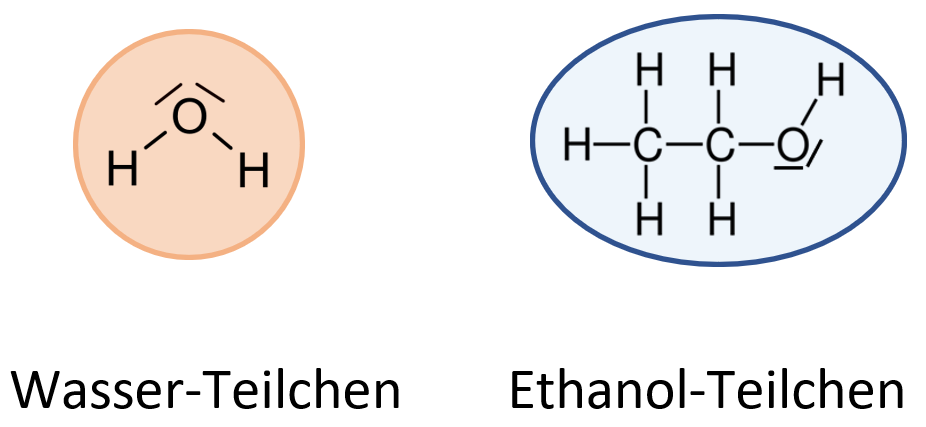 Ziehen sich beispielsweise Moleküle aufgrund ihres räumlichen Baus unterschiedlich stark an, führt dies auf der Stoffebene zu verschieden hohen Siedetemperaturen wie bei Wasser und Ethanol
