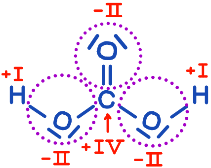 - Ordnen Sie mithilfe gestrichelter Linien die Bindungselektronen allen Atomen in jedem Molekül zu und geben Sie für jedes Atom die Oxidationszahl an.