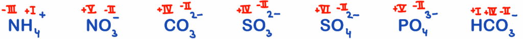 Bei Verhältnisformeln von Salzen ist die Oxidationszahl der Metall-Ionen bzw. Halogenid-Ionen gleich ihrer Ladungszahl. Die Ladung der Molekül-Ionen muss diese Ladung exakt ausgleichen. Daraus lassen sich erneut die Oxidationszahlen in den Molekül-Ionen bestimmen.