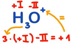 Die Summe der Oxidationszahlen ist bei Molekül-Ionen gleich der Gesamtladungszahl. Eine fehlende Oxidationszahl eines Atoms in einem zusammengesetzten Ion lässt sich ermitteln, wenn man annimmt, dass Wasserstoffatome in der Regel die Oxidationszahl +I und Sauerstoffatome die Oxidationszahl -II zukommt: