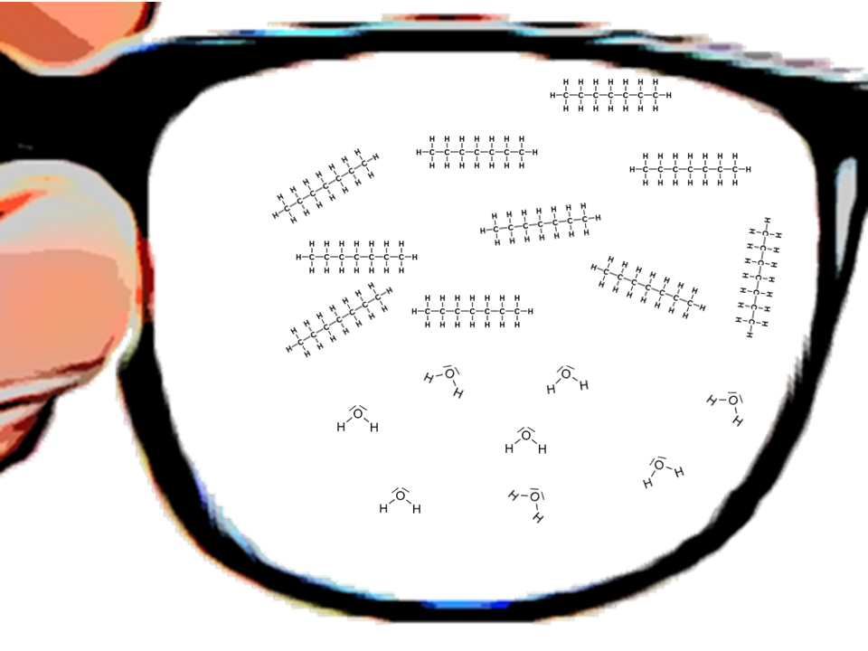 Wir wollen im Folgenden mit Hilfe eines Modellversuchs unter Verwendung von Teilchendarstellungen nachvollziehen, warum sich Heptan nicht dauerhaft mit Wasser mischen lässt.