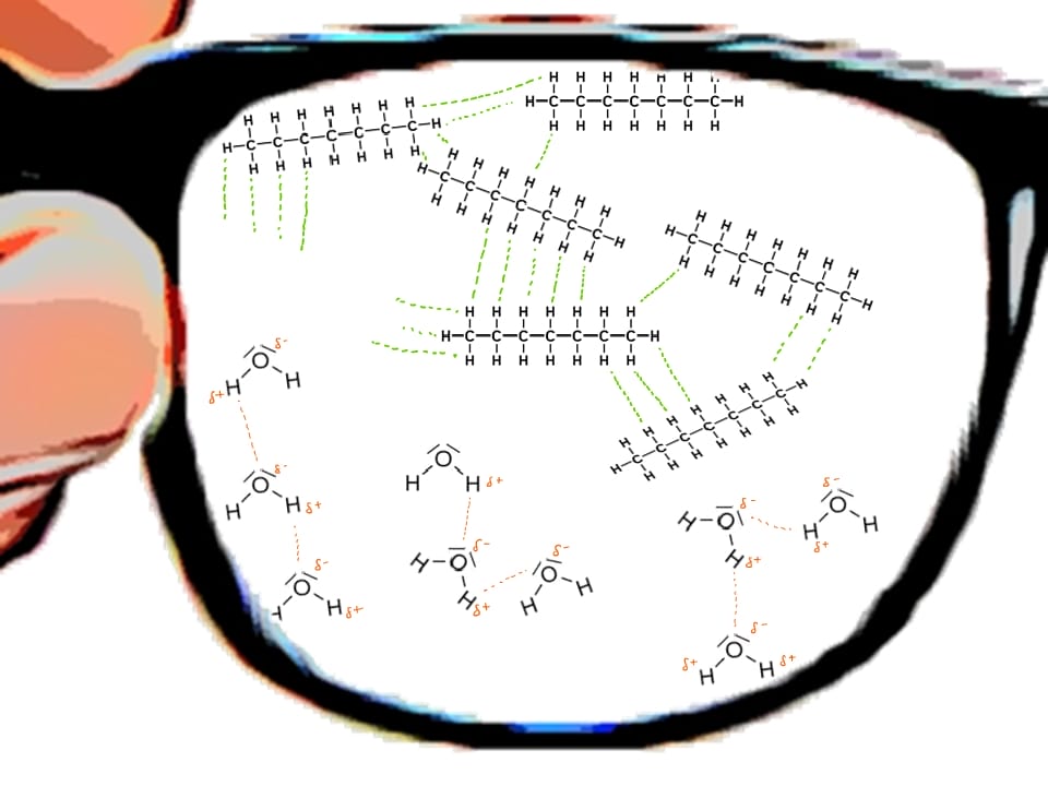 - Zeichnen Sie in ihre Abbildungen Teilladungen und zwischenmolekulare Kräfte z. B. in Form von Pfeilen exemplarisch ein.