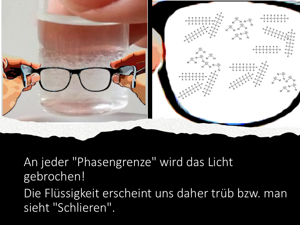 - Beschreiben Sie ihre Beobachtungen unter der Verwendung des Fachbegriffs Phasengrenze, den Sie recherchieren.