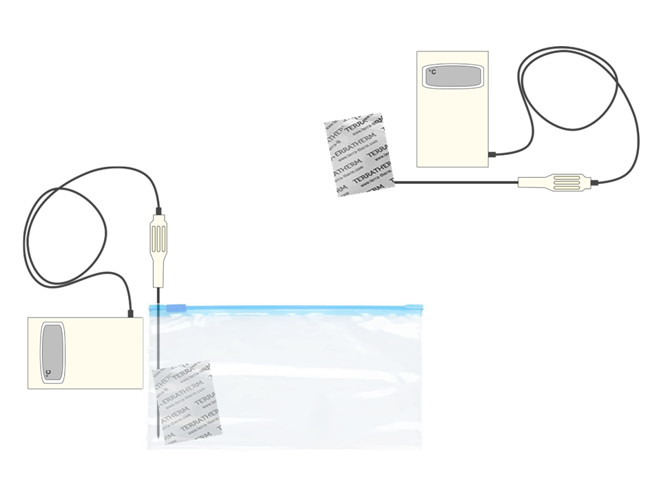 Mit dem Thermometer (Temperatur – beide Beutel – messen)