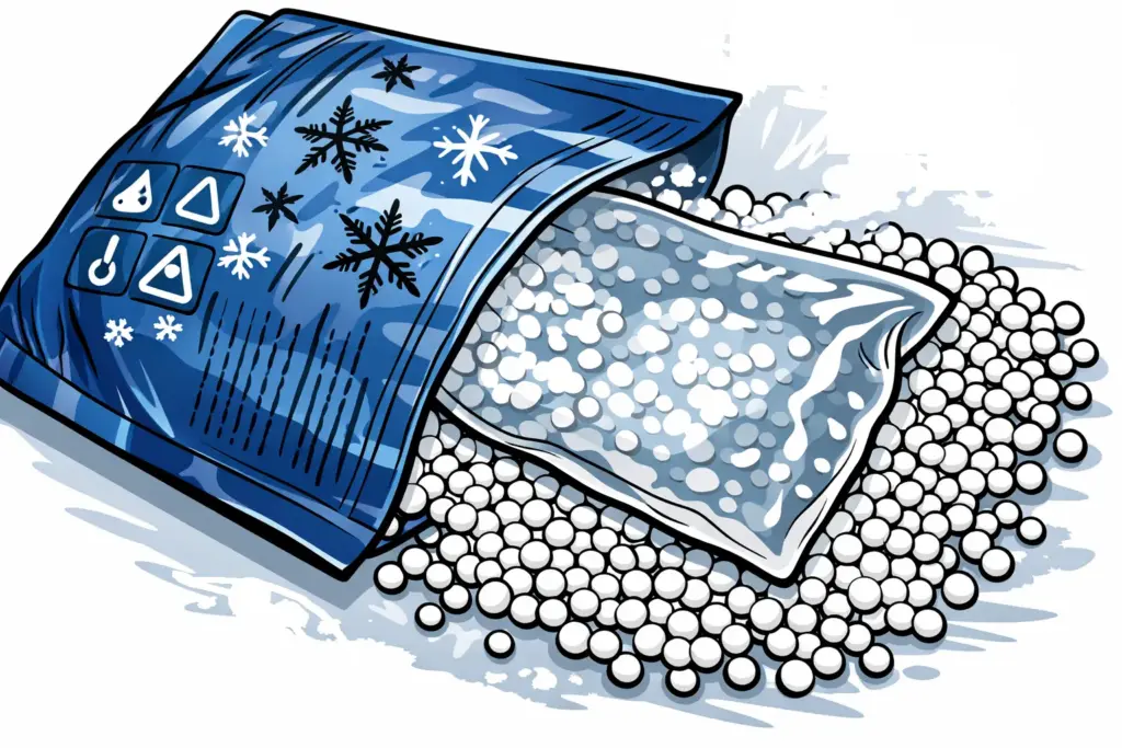 - Erkläre, wie die Beschriftung einer Filmleiste zur Beschreibung der Löseprozesse in einem Kältekissen lauten müsste.