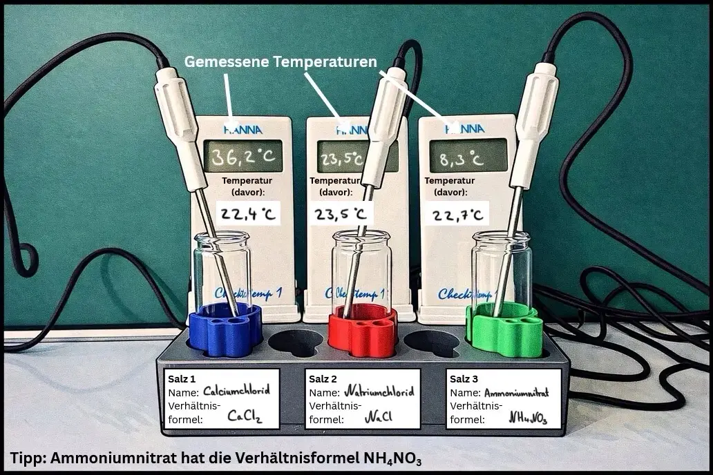 - Bereite dich darauf vor dein Ergebnis zu präsentieren und dabei zu erläutern, warum der Löseprozess im Hotpot zu einer Erwärmung führt.