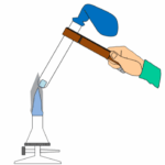 - Halte das Reagenzglas kurz in die Flamme (-> „Erwärmen“ – s. Bild)