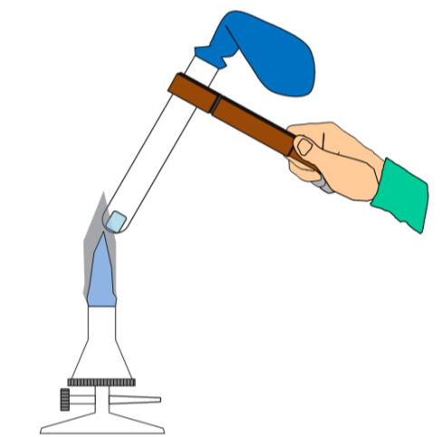 - Gib ein kleines Stück Eis in das Reagenzglas.