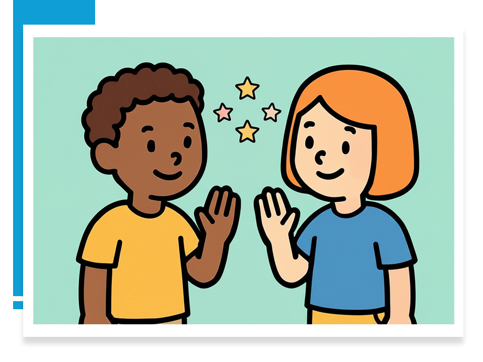 - Georgisch: ჩვენ მეგობრულად ვთამაშობთ!